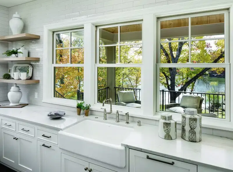 Double-hung windows are among the most versatile options for a farmhouse-style home. They open from both the top and bottom, making it easy to adjust airflow in busy rooms like bedrooms or kitchens.